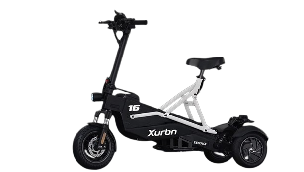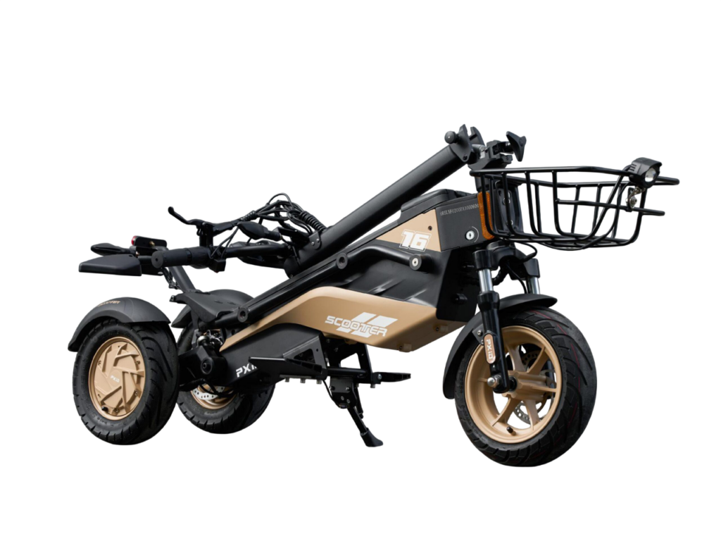 This is not a standard two-wheel scooter – it is a stable three-wheel e-scooter designed for maximum safety, control, and impact.